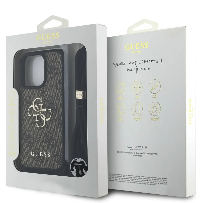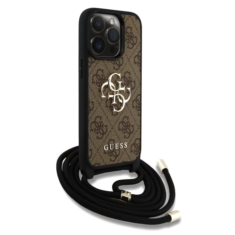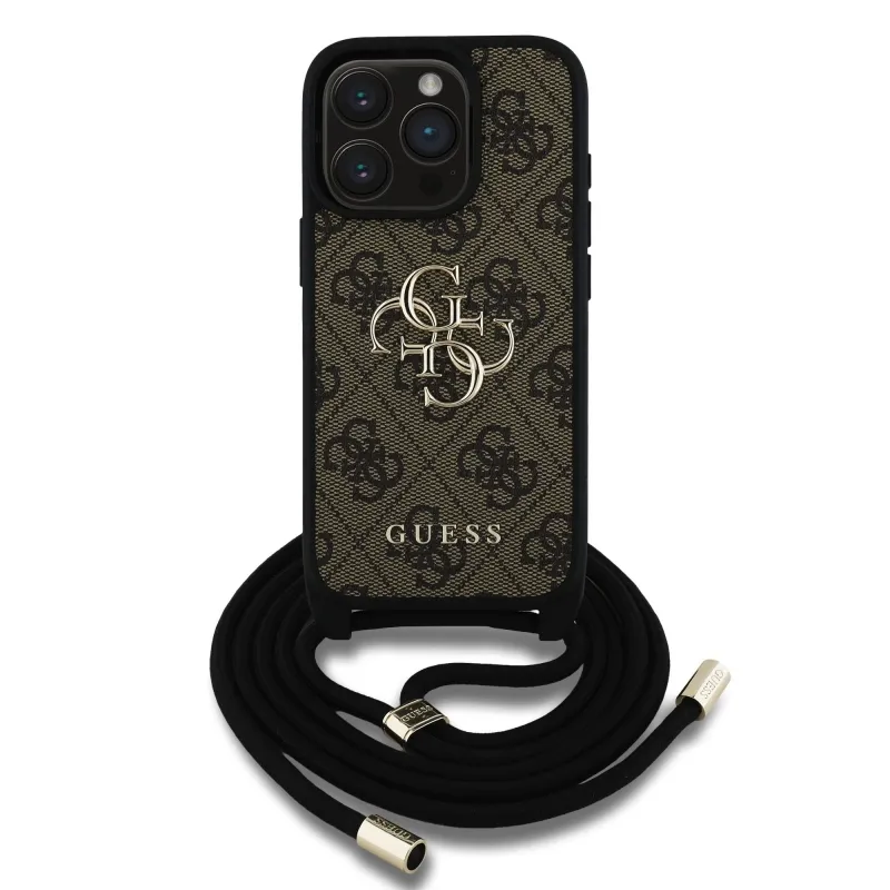 Guess PU 4G fém logó fém keresztpánt hátlapi borító iPhone 15 Pro Max-hoz barna barna