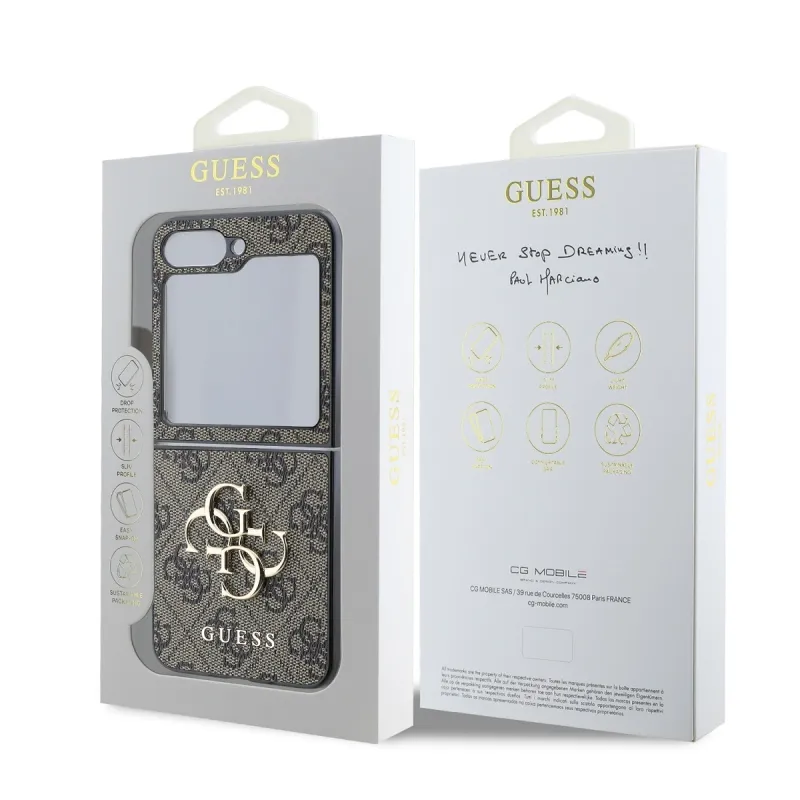 Guess PU 4G fém logó hátlap Samsung Galaxy Z Flip 6 barna