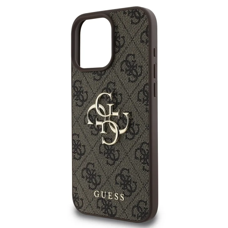 Guess PU 4G fém logós hátlap iPhone 16 Pro Max-hoz barna barna