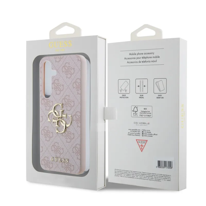 Guess PU 4G fém logós hátlap Samsung Galaxy S24 rózsaszínű borítóhoz