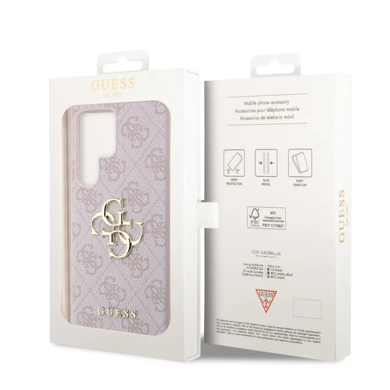 Guess PU 4G fém logós hátlap Samsung Galaxy S24 Ultra rózsaszín