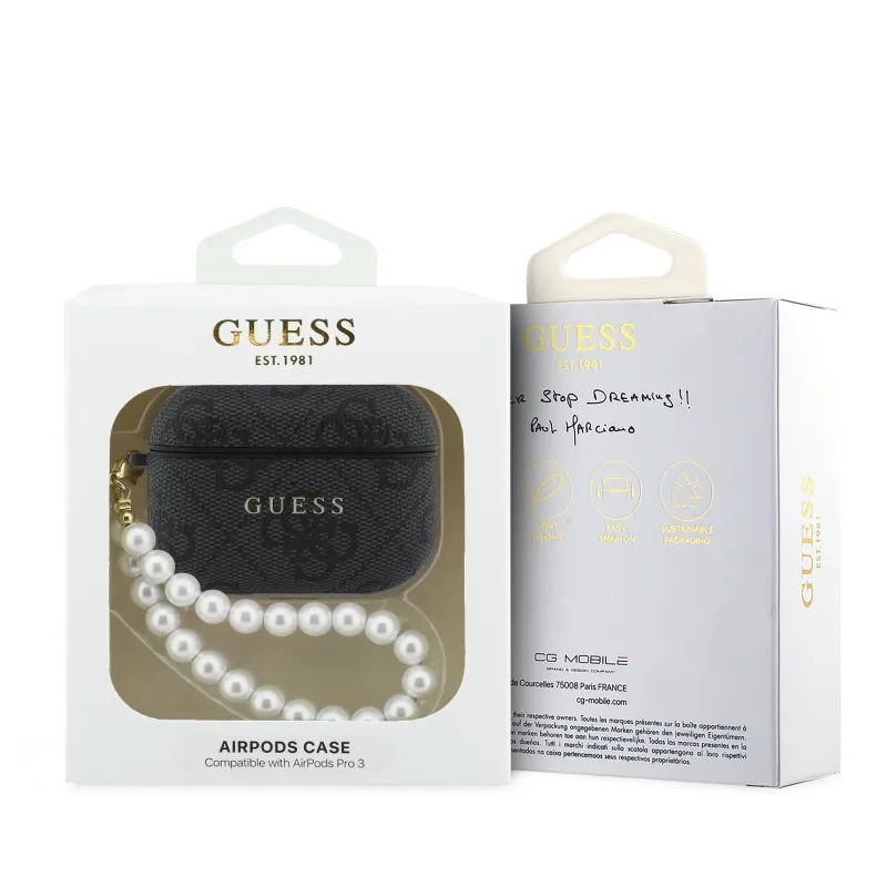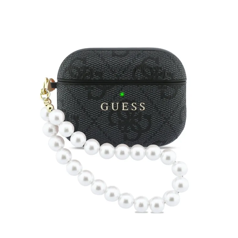 Guess PU 4G Classic Logo Pearl szíjas tok AirPods Pro 3-hoz, fekete