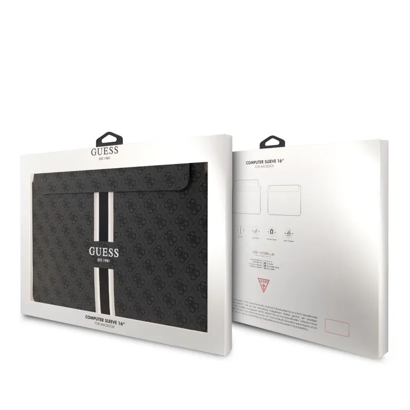 Guess PU 4G nyomtatott csíkos számítógépes tok 16" fekete