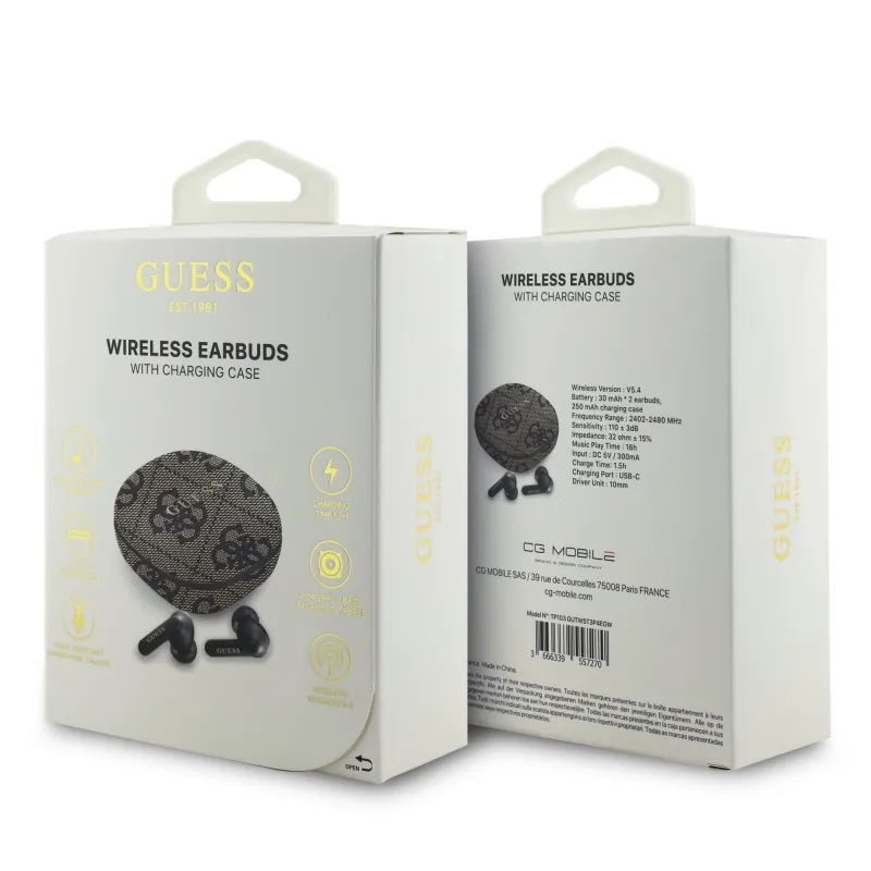Guess PU 4G Script Logo ENC TWS vezeték nélküli fejhallgató barna