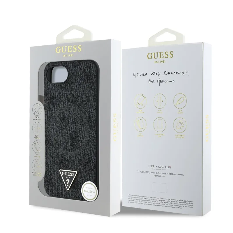 Guess PU 4G Strass háromszög fém logó hátlap iPhone SE4 fekete