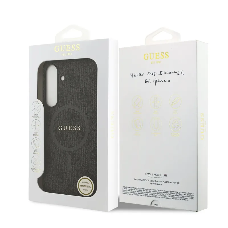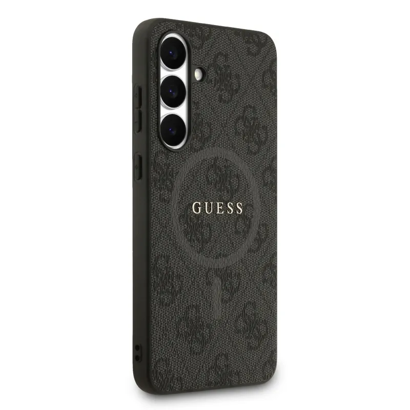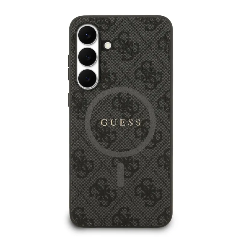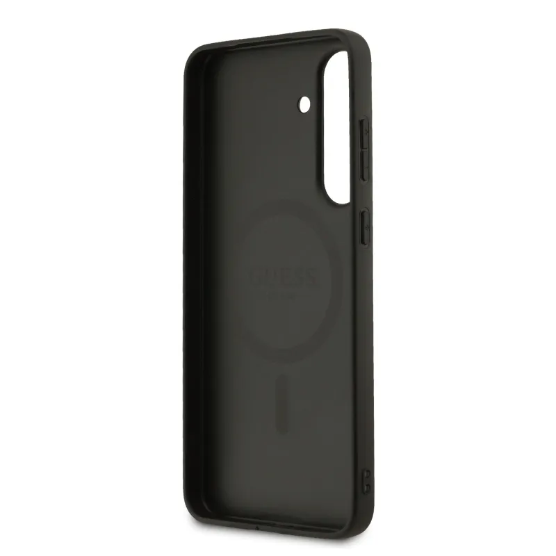 Guess PU bőr 4G színes gyűrű MagSafe hátlap Samsung Galaxy S25 FE fekete
