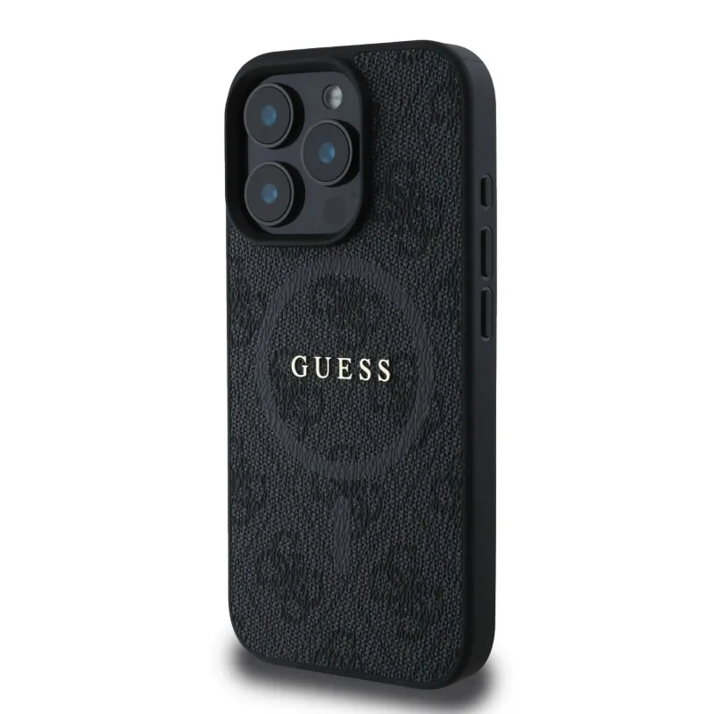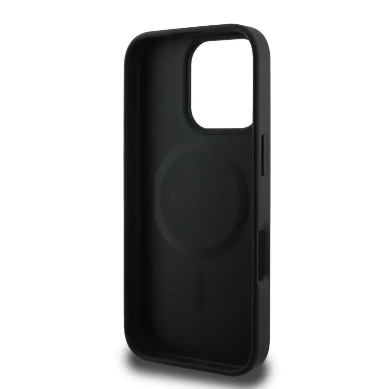 Guess PU bőr 4G színes gyűrűs MagSafe hátlap iPhone 16 Pro Fekete