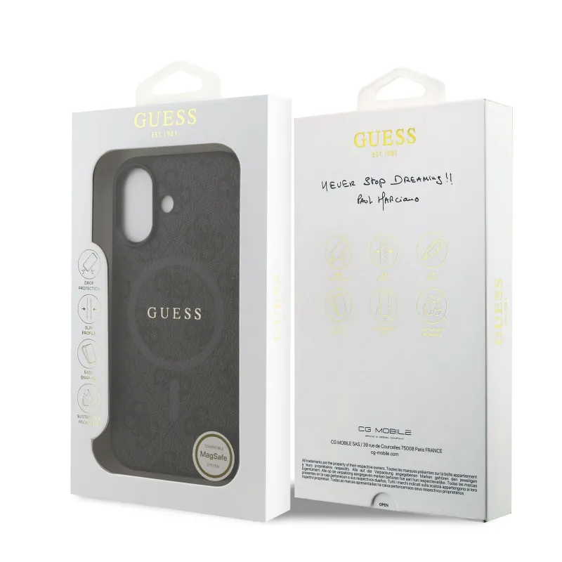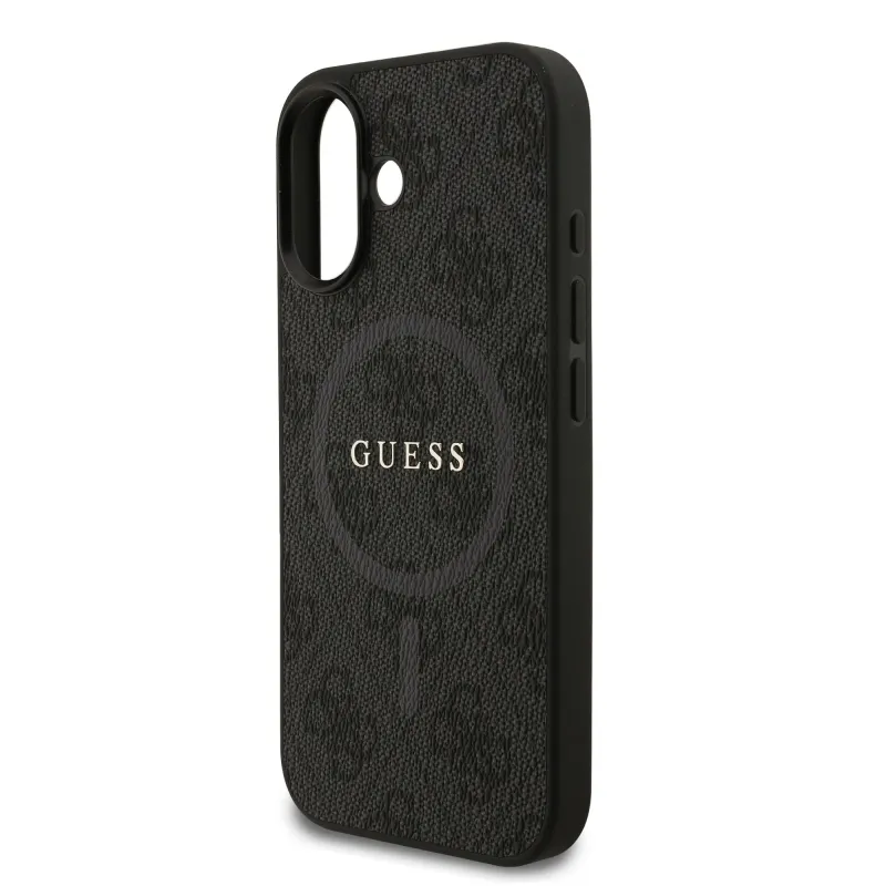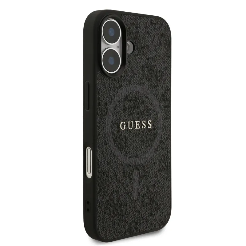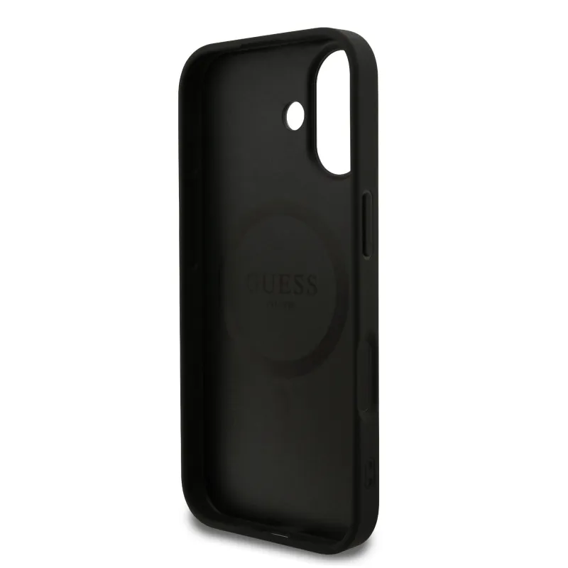 Guess PU bőr 4G színes gyűrűs MagSafe hátlap iPhone 17 Fekete