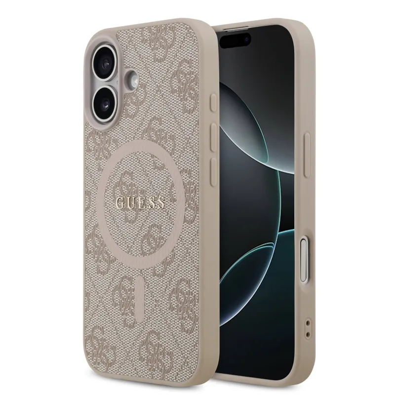 Guess PU bőr 4G színes gyűrűs MagSafe hátlap iPhone 17 rózsaszínhez