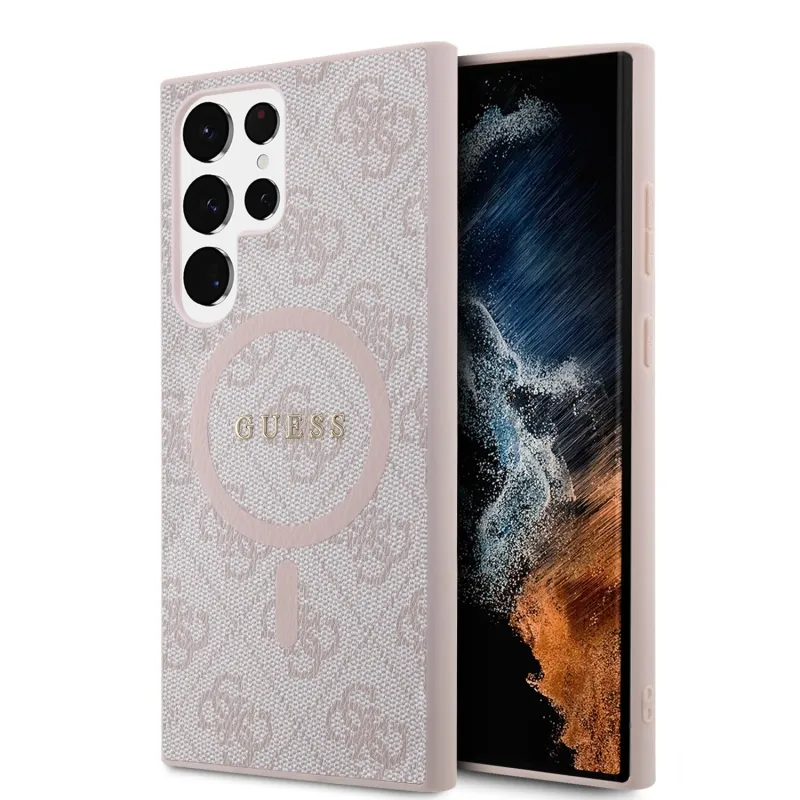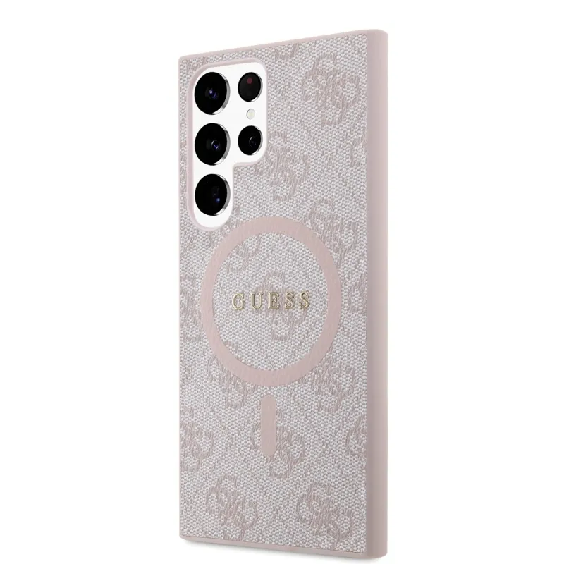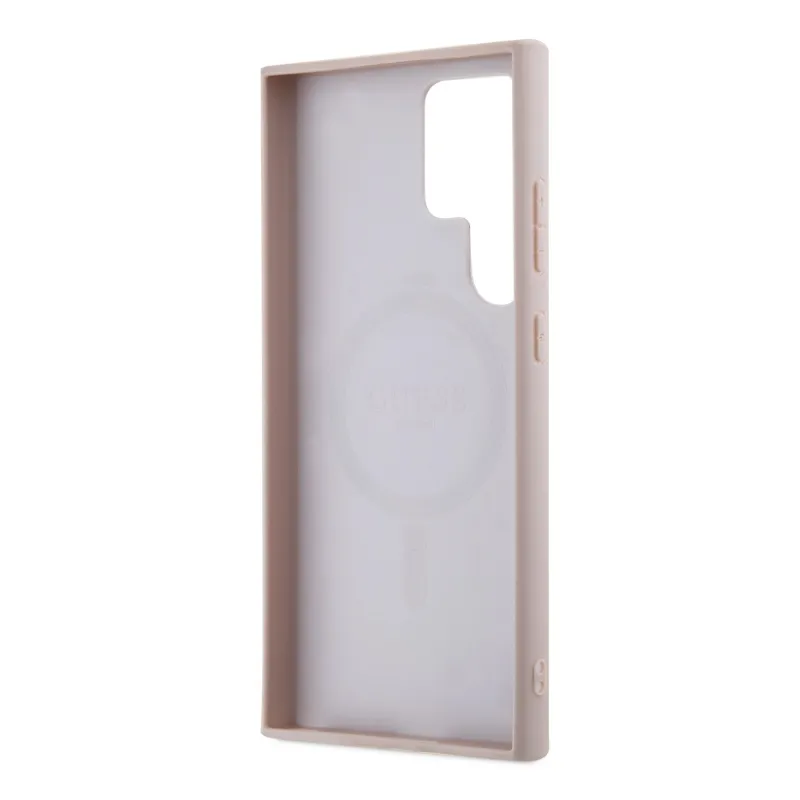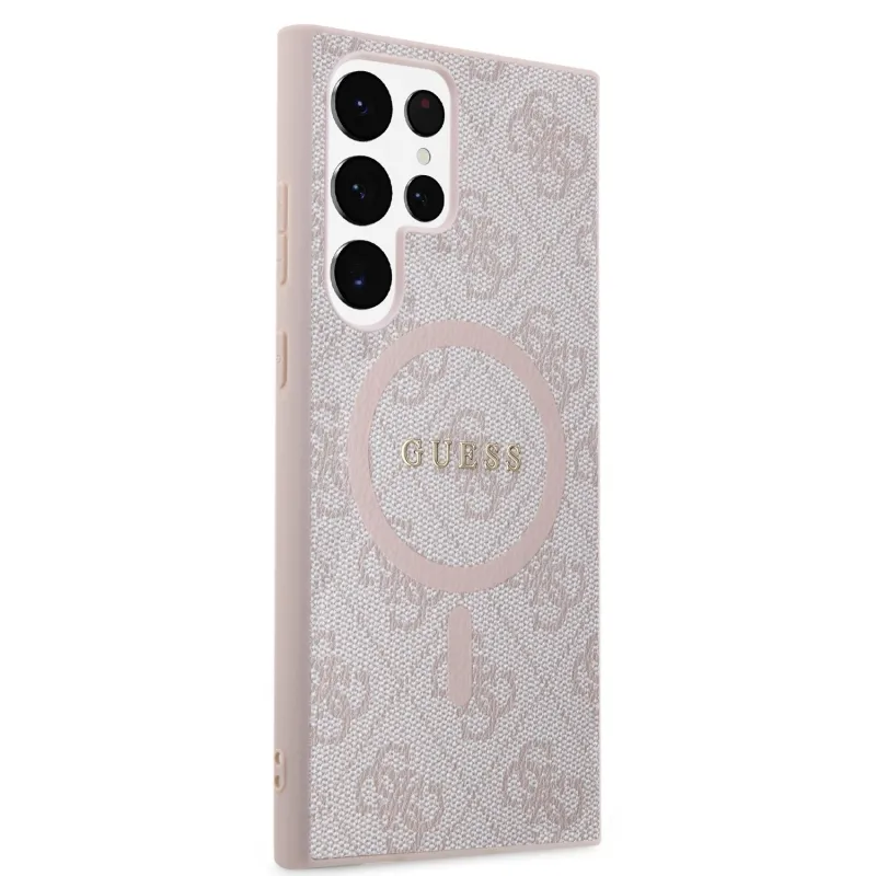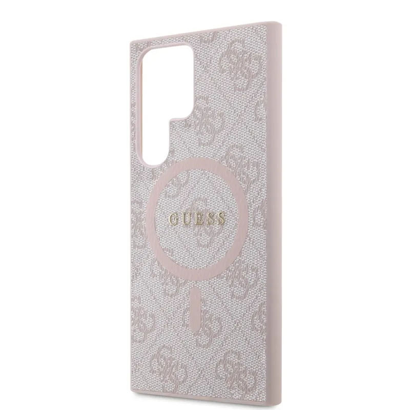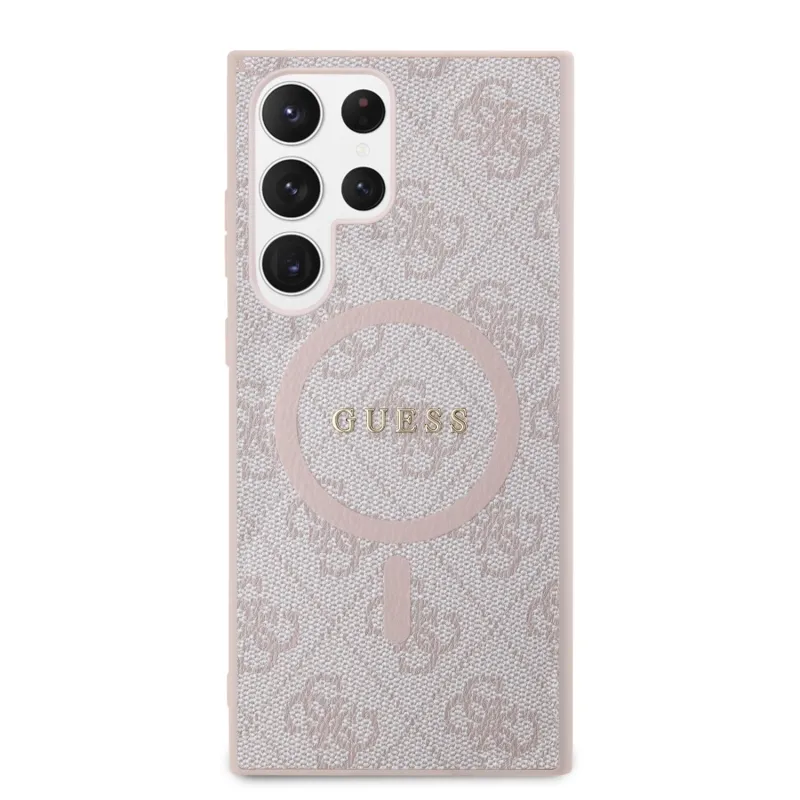 Guess PU bőr 4G színes gyűrűs MagSafe hátlap Samsung Galaxy S24 Ultra rózsaszín