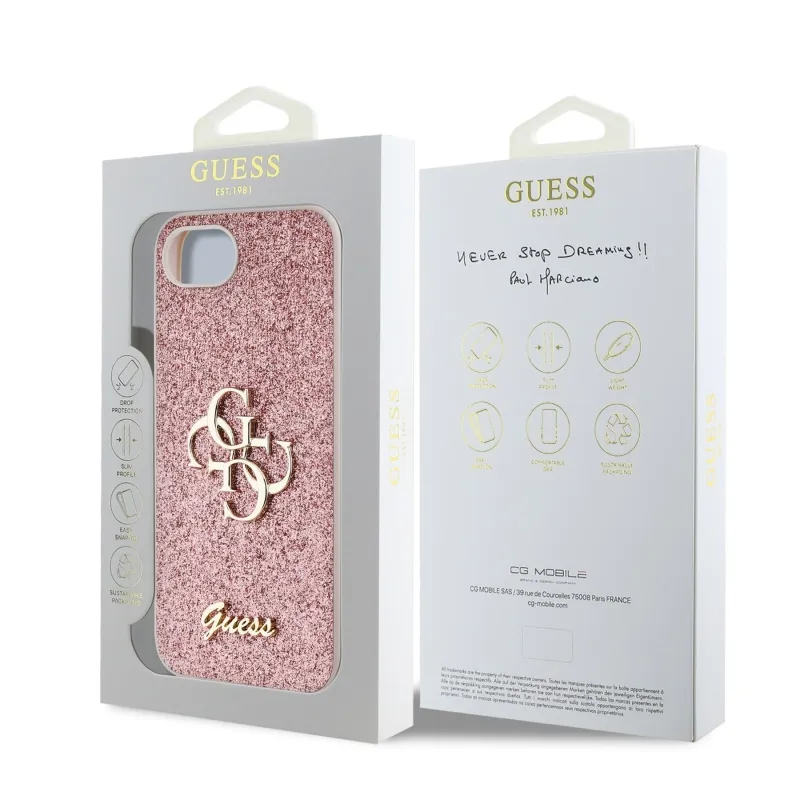 Guess PU Fixed Glitter 4G fém logós hátlap iPhone SE4 rózsaszínhez Rózsaszín