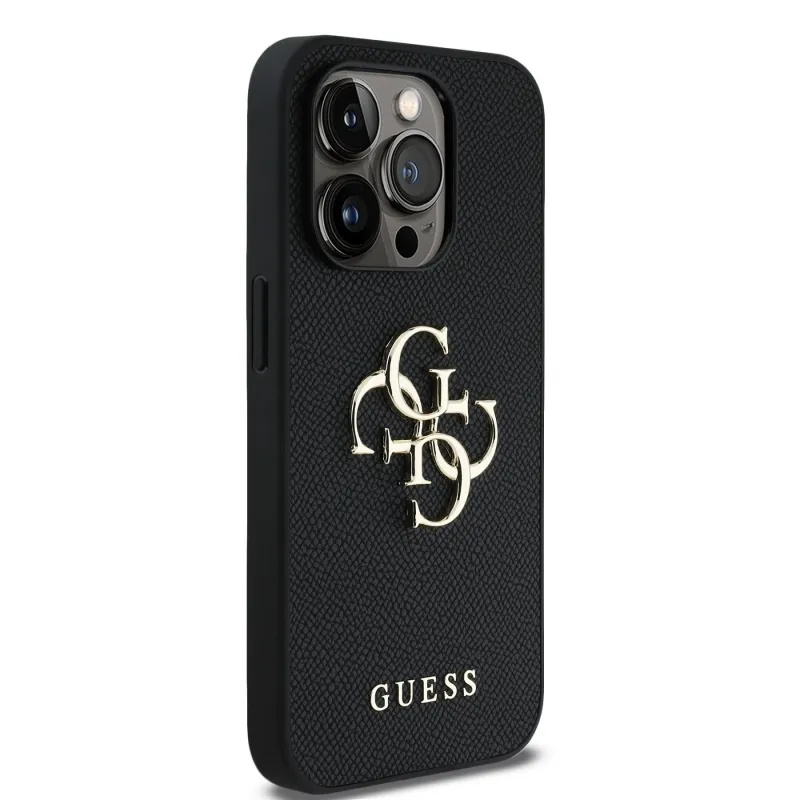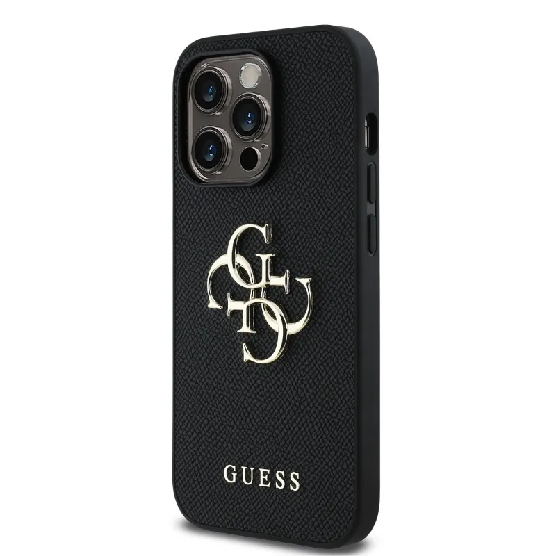 Guess PU szemcsés 4G fém logós hátlap iPhone 13 Pro fekete színűre