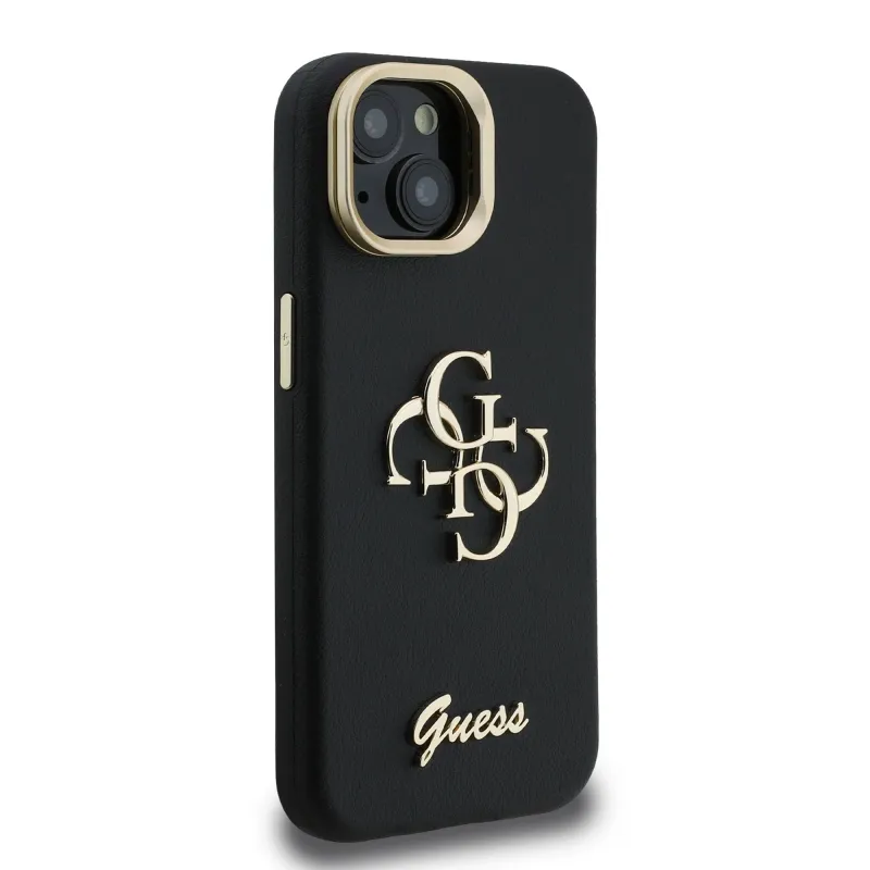 Guess PU szemcsés 4G Logo Stand Kamera keret hátlapi borító iPhone 13-hoz Fekete