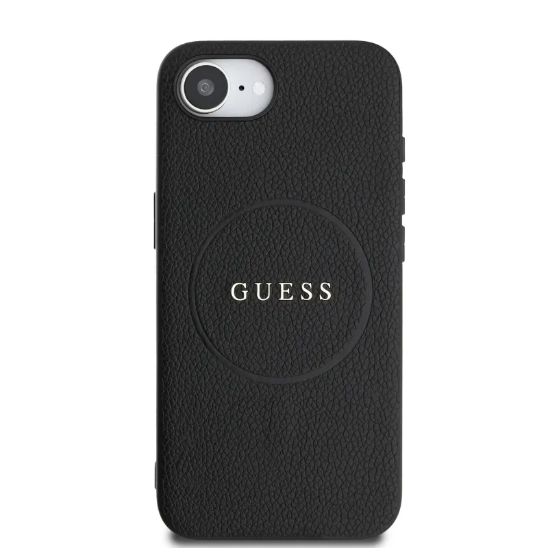 Guess PU szemcsés klasszikus logós MagSafe hátlap az iPhone SE4 készülékhez Fekete