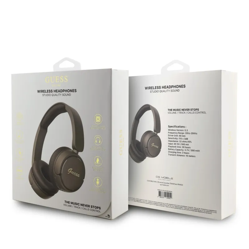 Guess Script fém logós vezeték nélküli fejhallgató barna