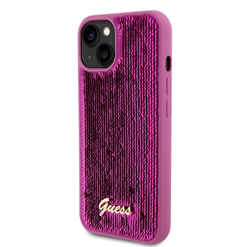 Guess Sequin Script logós hátlap iPhone 13 Magenta