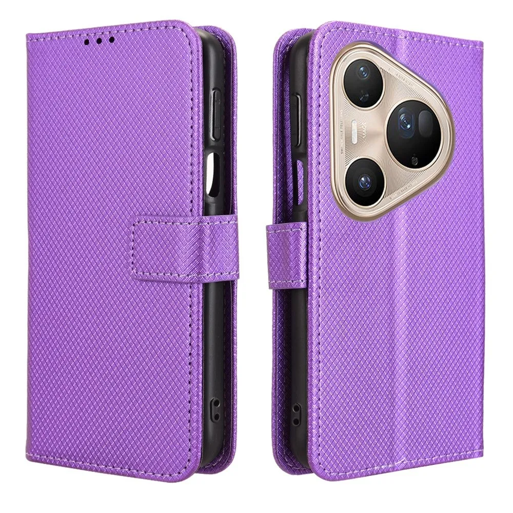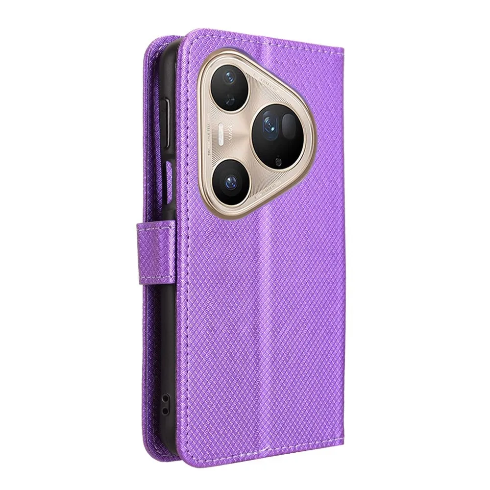 ✅【PU bőr és TPU anyag】Gyémánt mintás tok lila színben Huawei Pura 80 Pro készülékhez, prémium PU bőrből és tartós TPU-ból készült a stílusos és megbízható védelem érdekében.