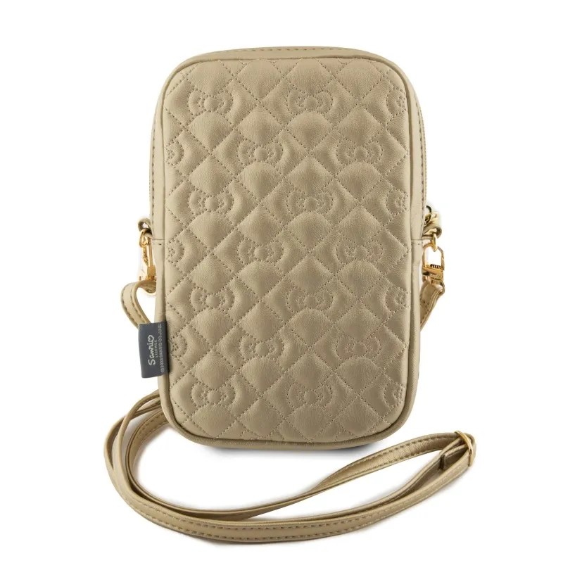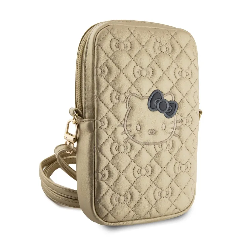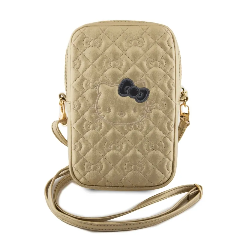 Hello Kitty PU bőr steppelt mintás Kitty Head Logo telefon táska arany