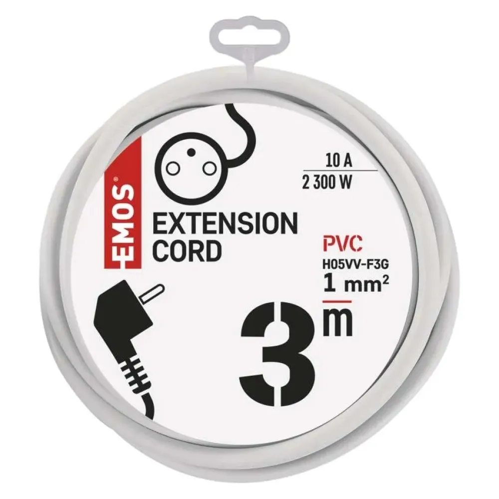 Hosszabbító kábel 3 m / 1 csatlakozó / fehér / PVC / 1 mm2