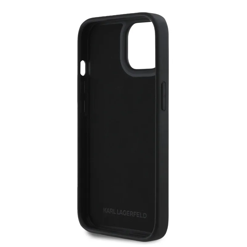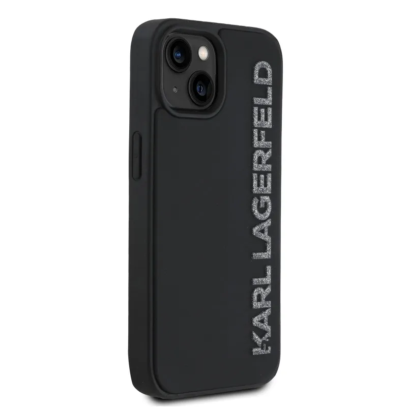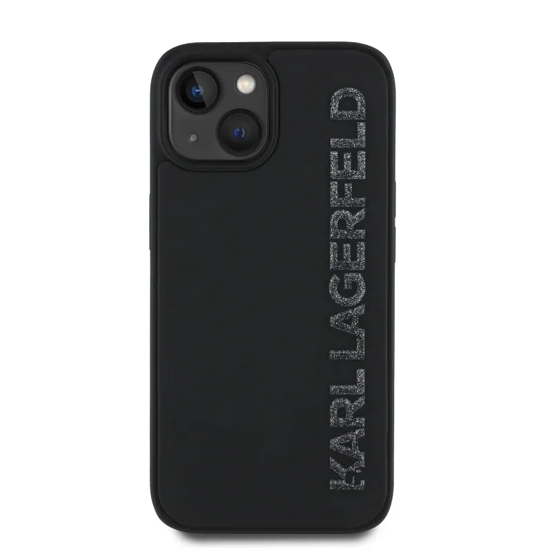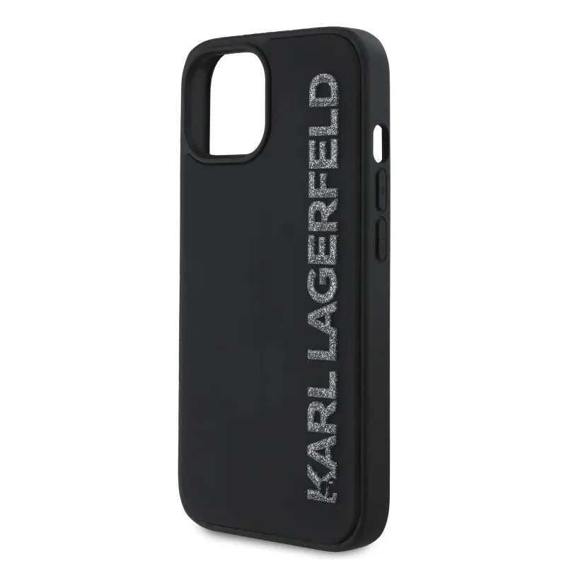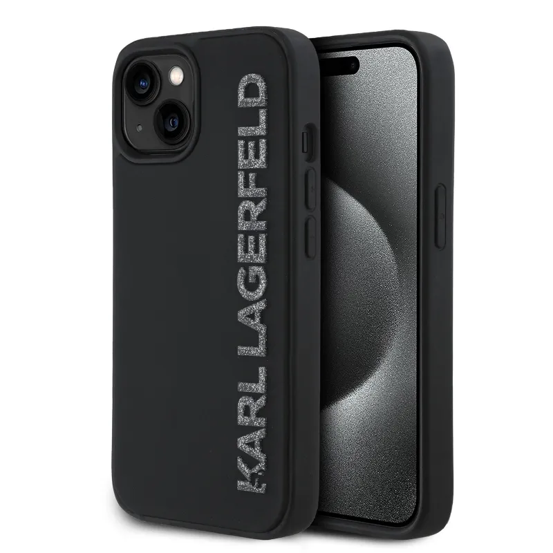 Karl Lagerfeld 3D gumiból készült, csillogó logós hátlap iPhone 14 készülékhez Fekete
