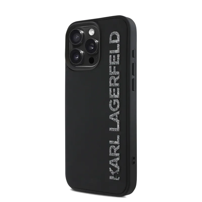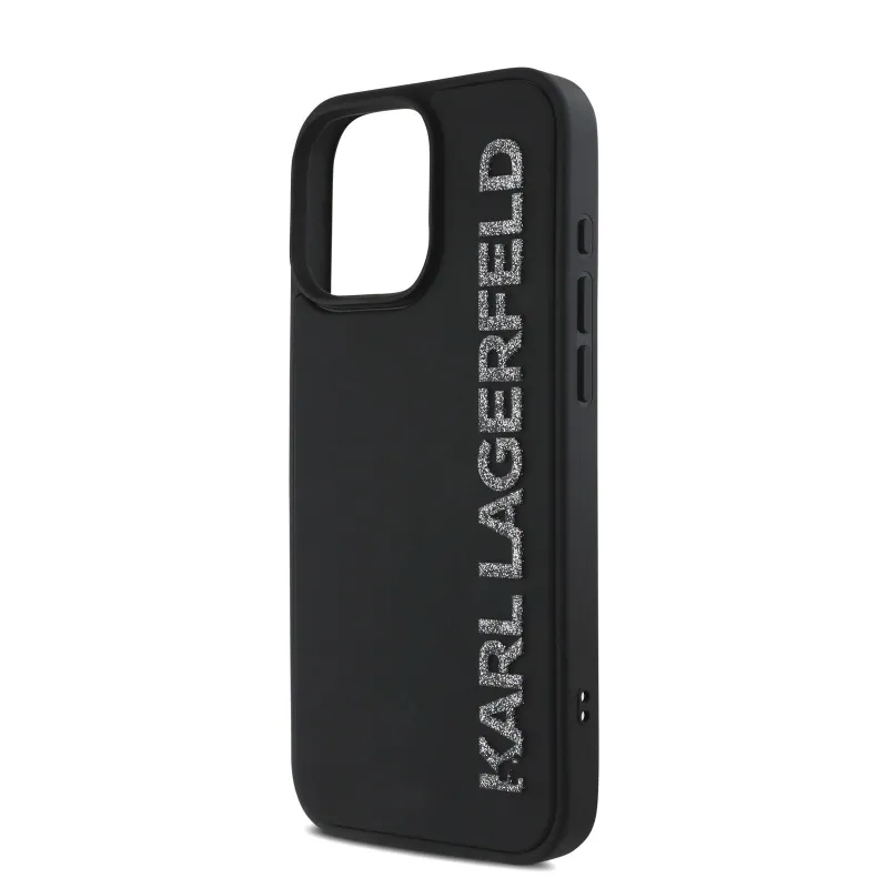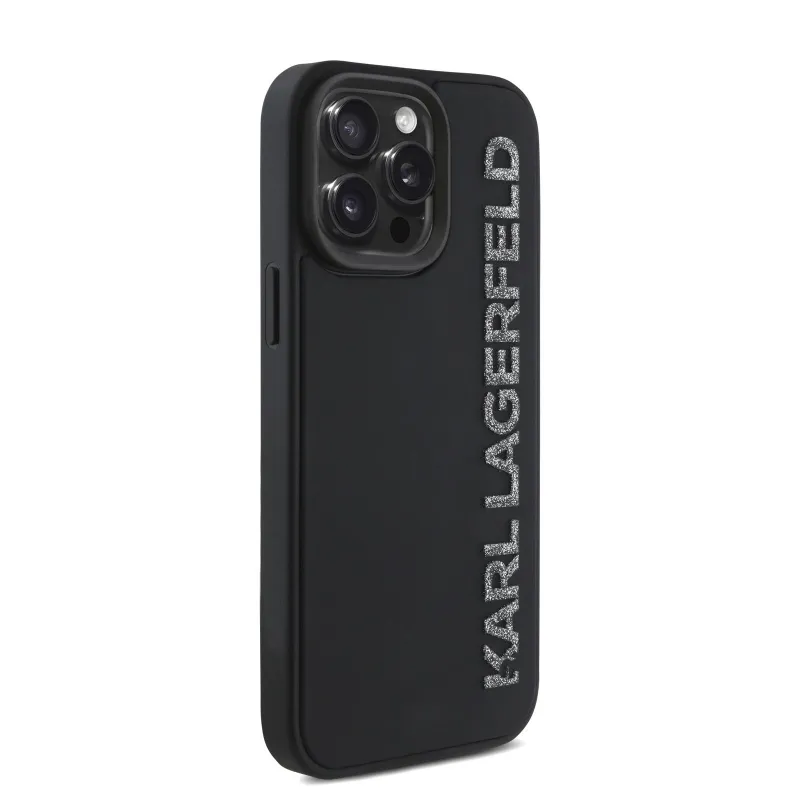 Karl Lagerfeld 3D gumiból készült csillogó logós hátlap iPhone 15 Pro Max készülékhez Fekete