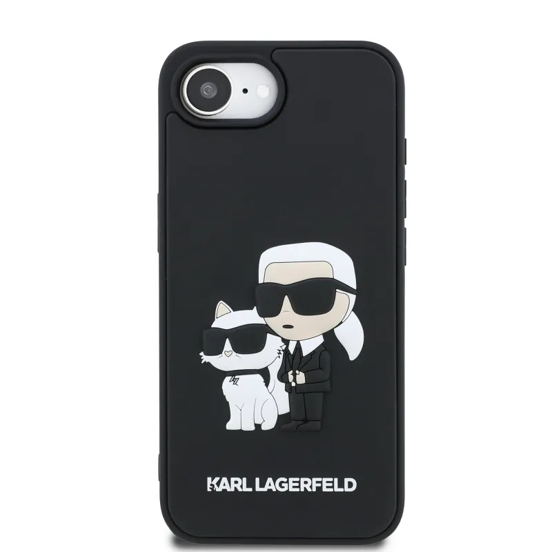 Karl Lagerfeld 3D gumiból készült Karl és Choupette hátlap iPhone 16e készülékhez Fekete