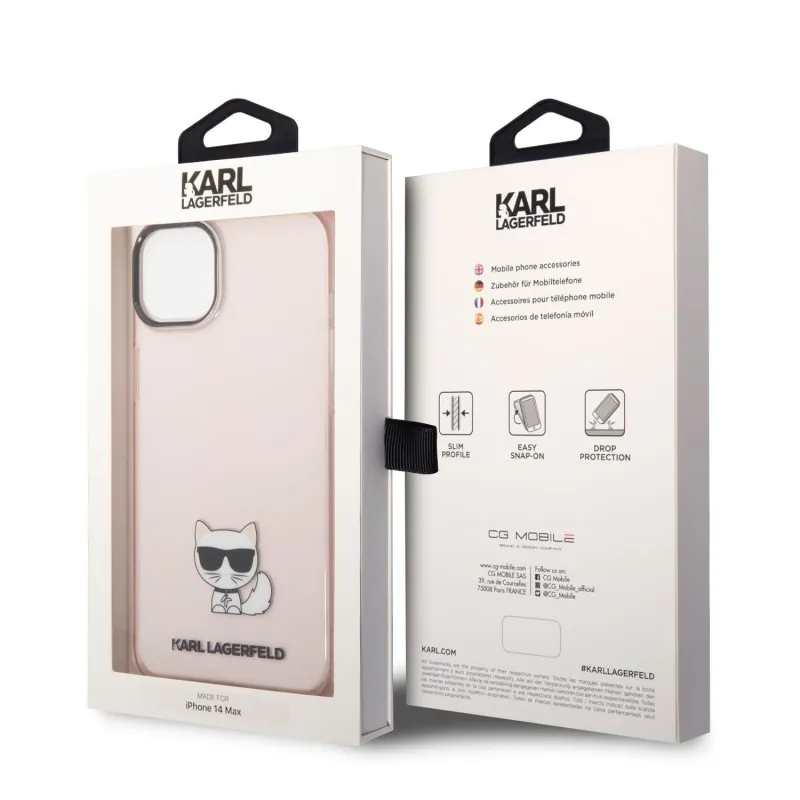 Karl Lagerfeld Choupette logós hátlap iPhone 14 Plus rózsaszínhez