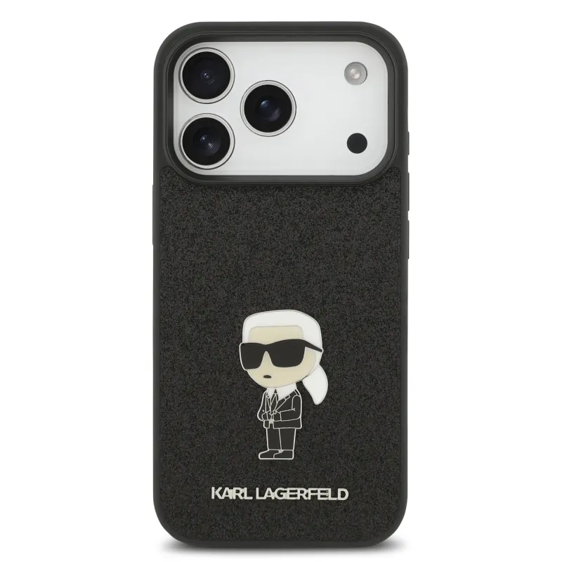 Karl Lagerfeld Fixed Glitter Metal Ikonik hátlap iPhone 17 Pro Fekete