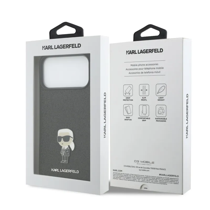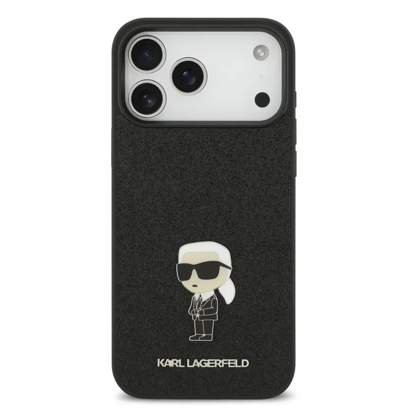 Karl Lagerfeld Fixed Csillámos Metál Ikonik Hátlap iPhone 17 Pro Maxhoz, fekete