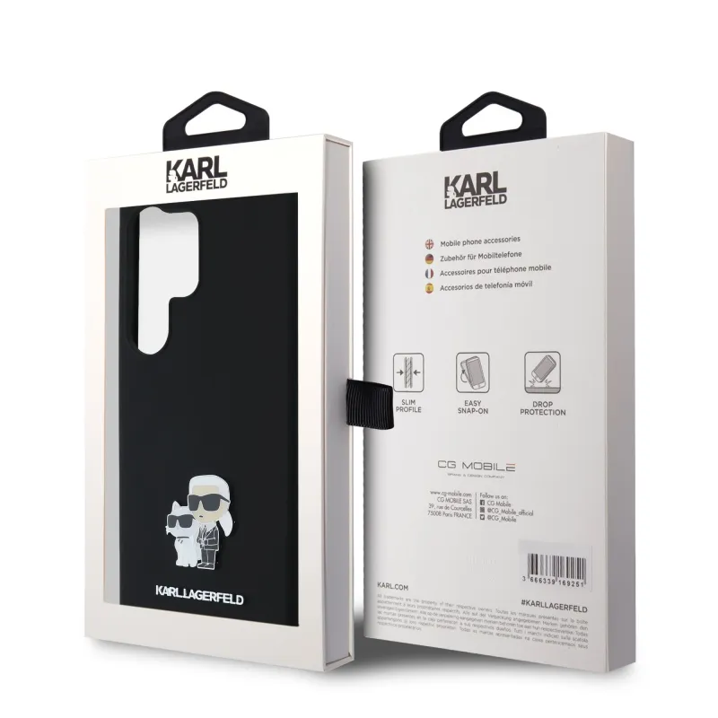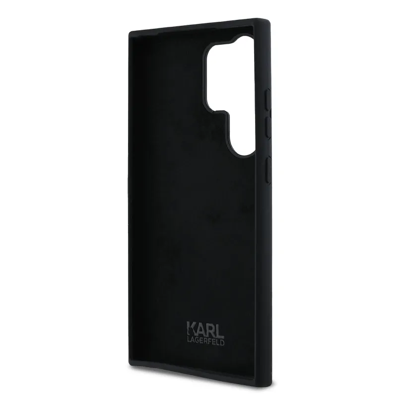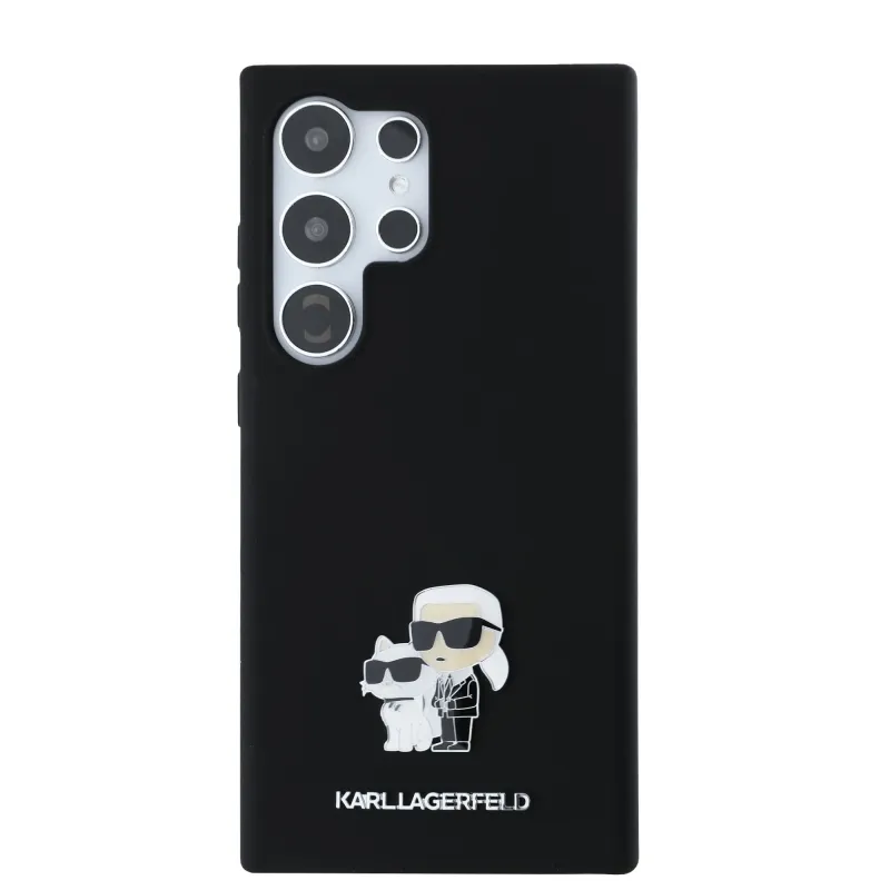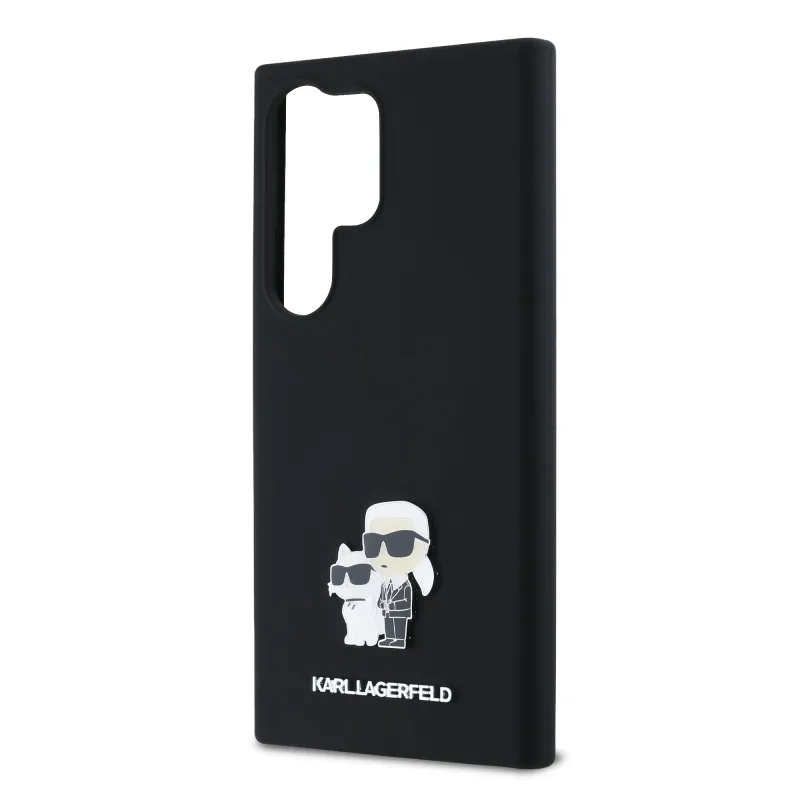Karl Lagerfeld Folyékony szilikon fém Karl és Choupette hátlap Samsung Galaxy S24 Ultra fekete