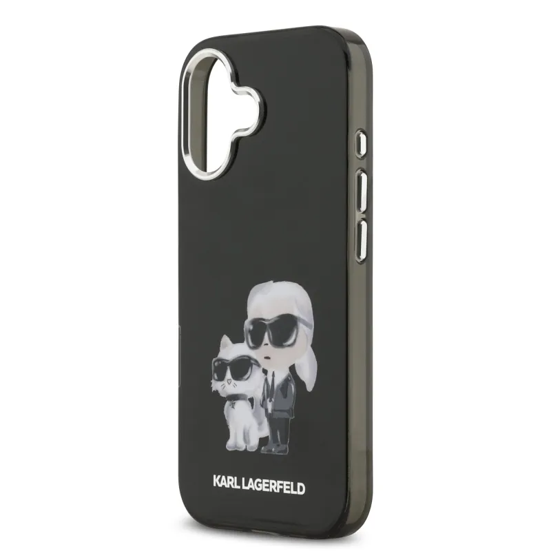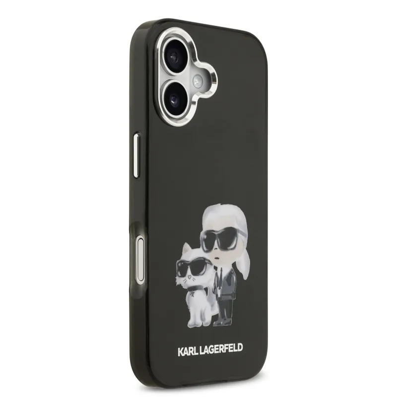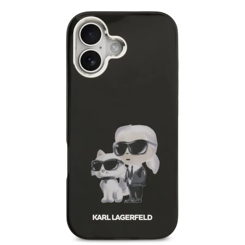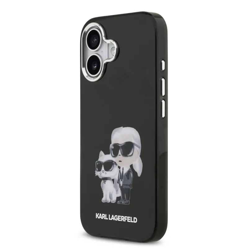 Karl Lagerfeld IML Aquarelle Karl és Choupette hátlapi borító iPhone 17 készülékhez Fekete