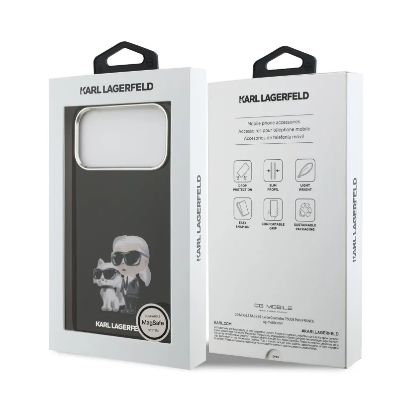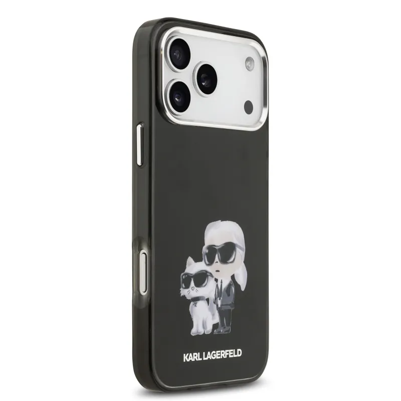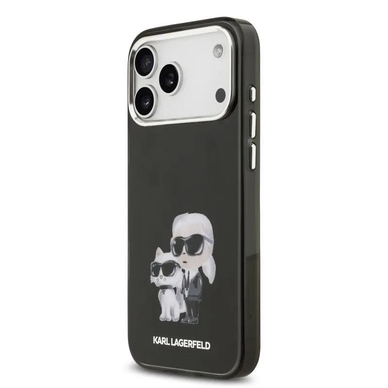 Karl Lagerfeld IML Aquarelle Karl és Choupette hátlapi borító iPhone 17 Pro-hoz Fekete