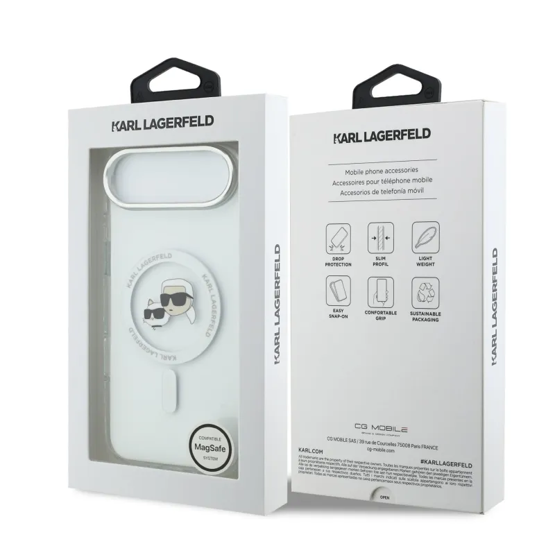 Karl Lagerfeld IML K&CH fejek fémkeret MagSafe hátlap iPhone Airhez átlátszó