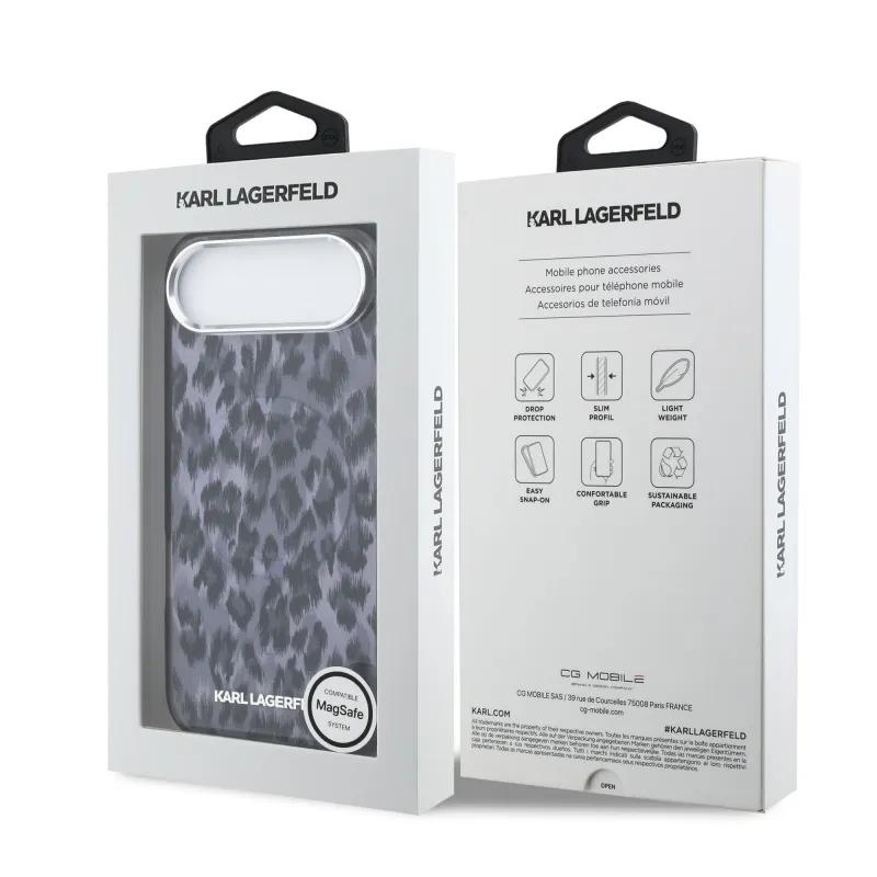 Karl Lagerfeld IML Leopard MagSafe hátlap iPhone-hoz, légszürke