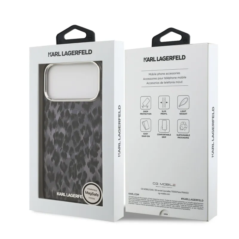Karl Lagerfeld IML Leopard MagSafe hátlap iPhone 17 Pro Max készülékhez, szürke