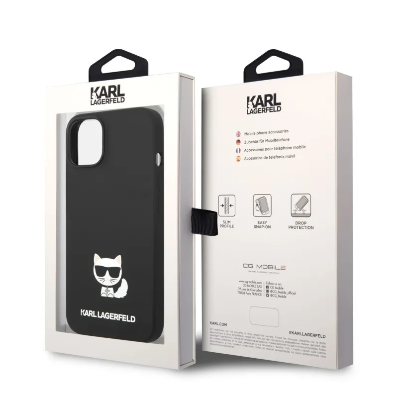 Karl Lagerfeld Liquid Silicone Choupette hátlap iPhone 14 Plus fekete színűre