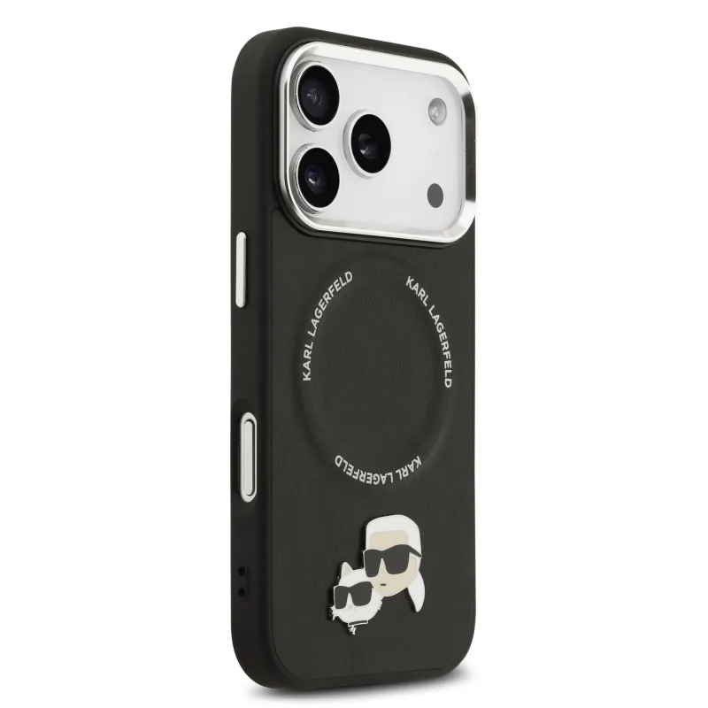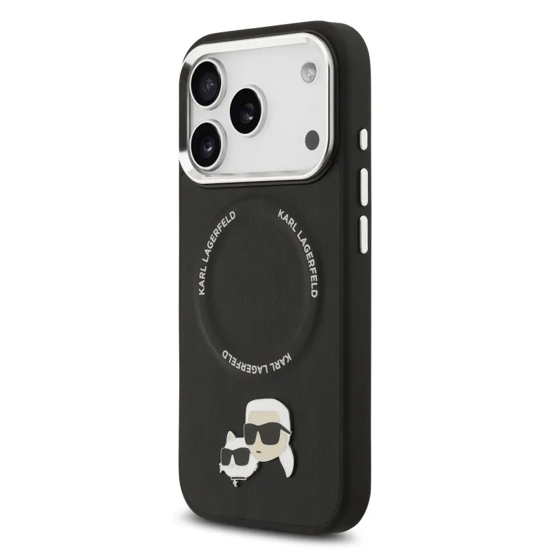 Karl Lagerfeld PU Karl és Choupette fejek tűk MagSafe hátlap iPhone 17 Pro fekete színű borítóhoz