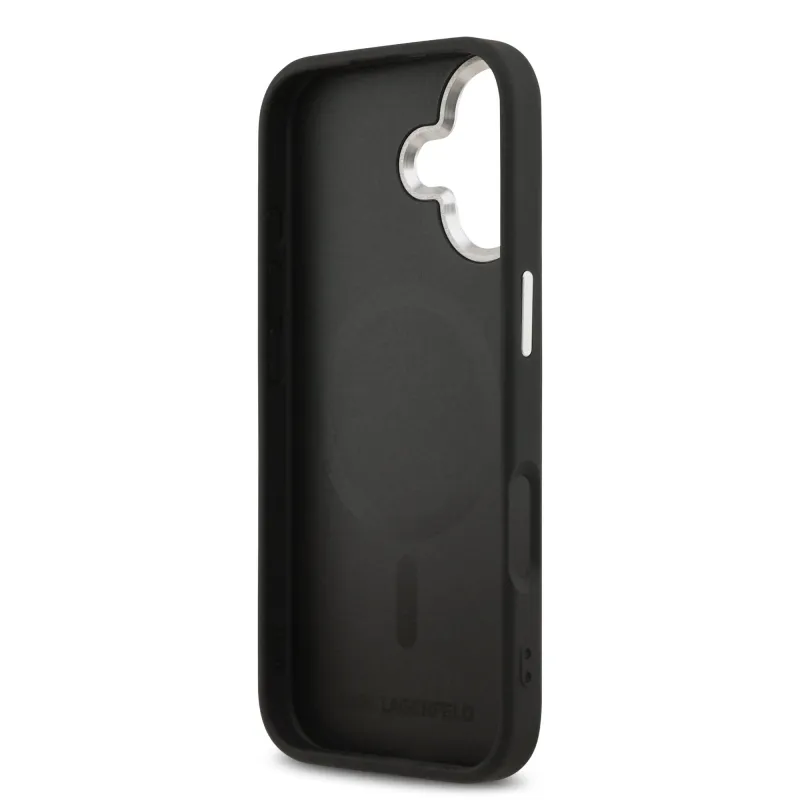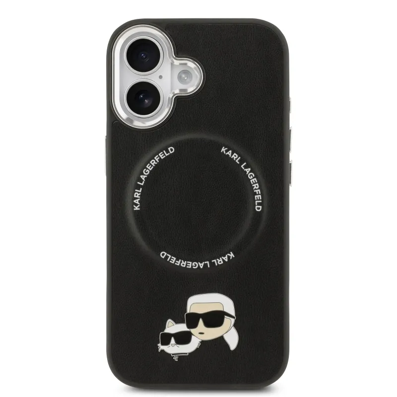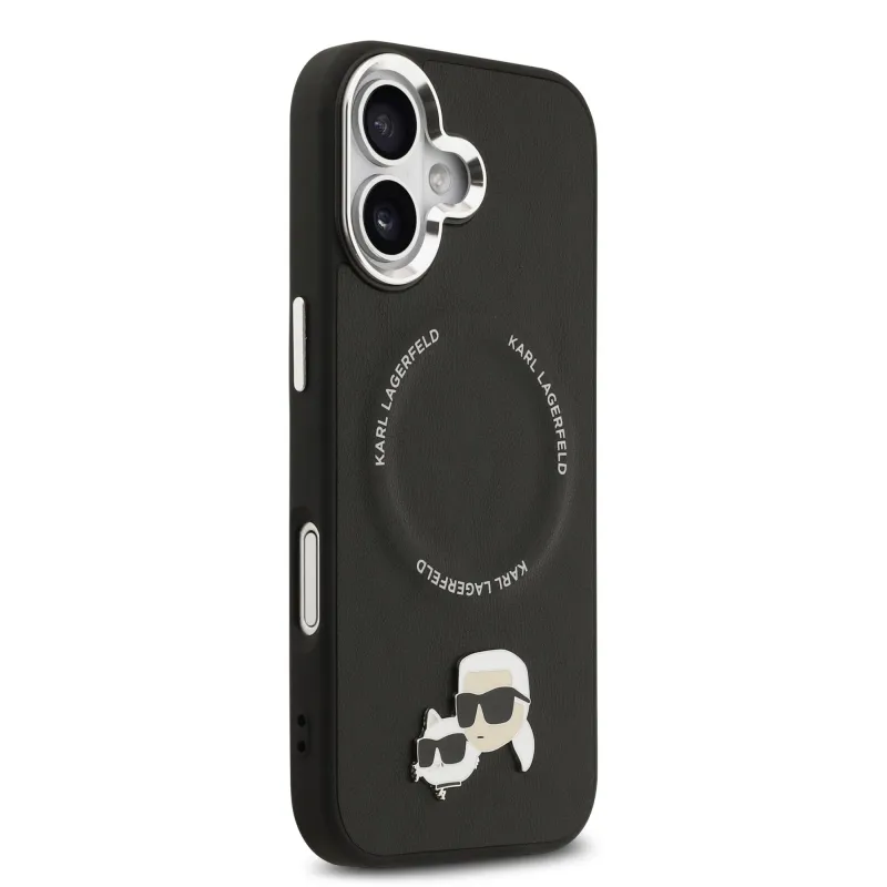 Karl Lagerfeld PU Karl és Choupette fejek díszítéssel, MagSafe hátlap iPhone 17-hez, fekete