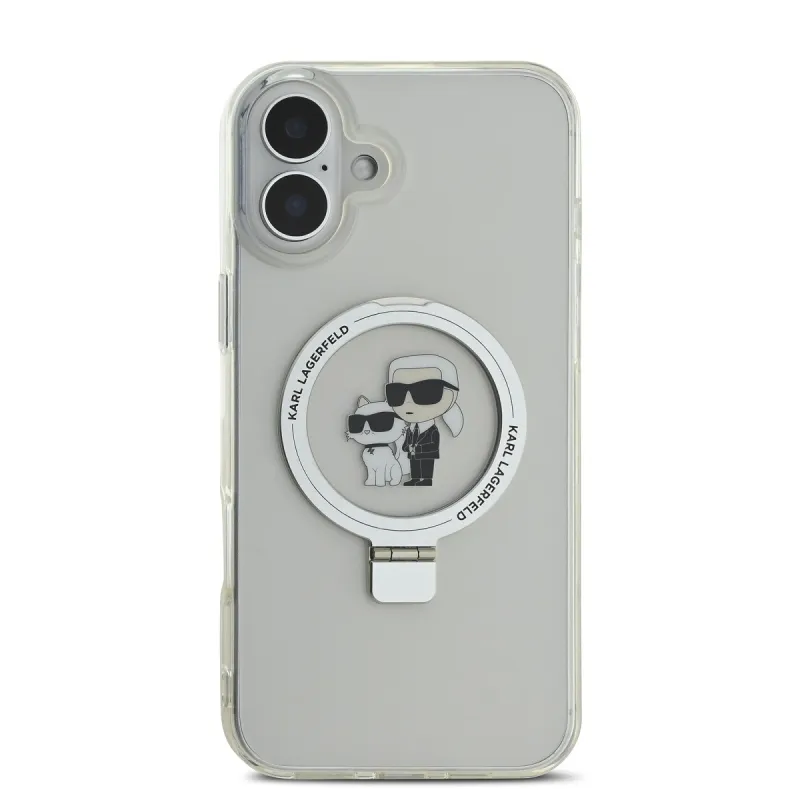 Karl Lagerfeld Ringstand Karl és Choupette MagSafe hátlapi borító iPhone 16 Plus készülékhez Fehér