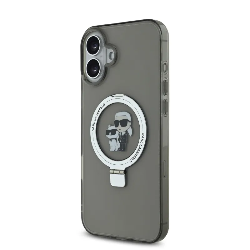 Karl Lagerfeld Ringstand Karl és Choupette MagSafe hátlapi borító iPhone 16 Plus készülékhez Fekete