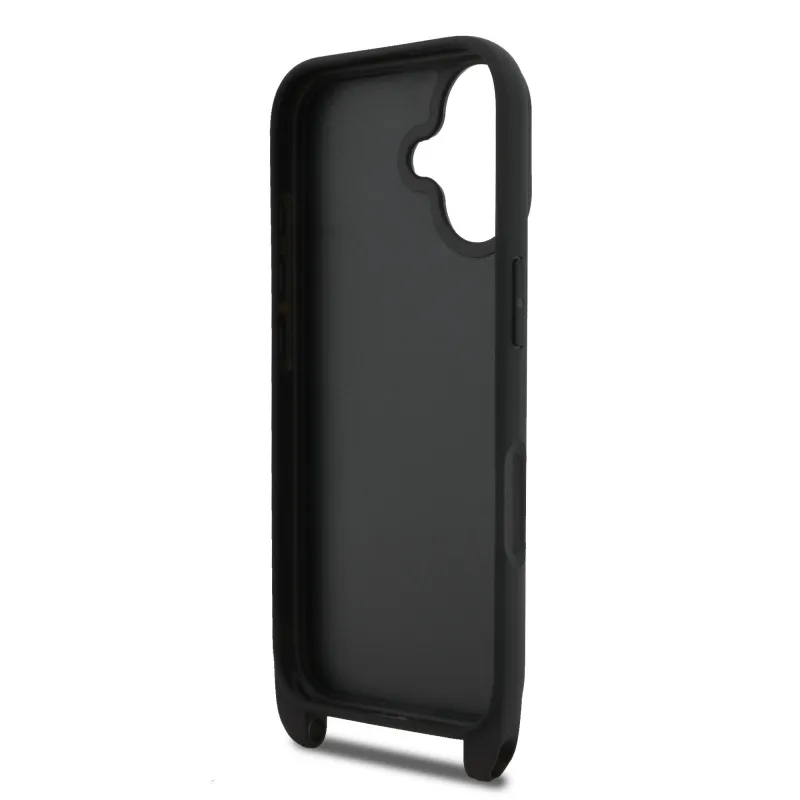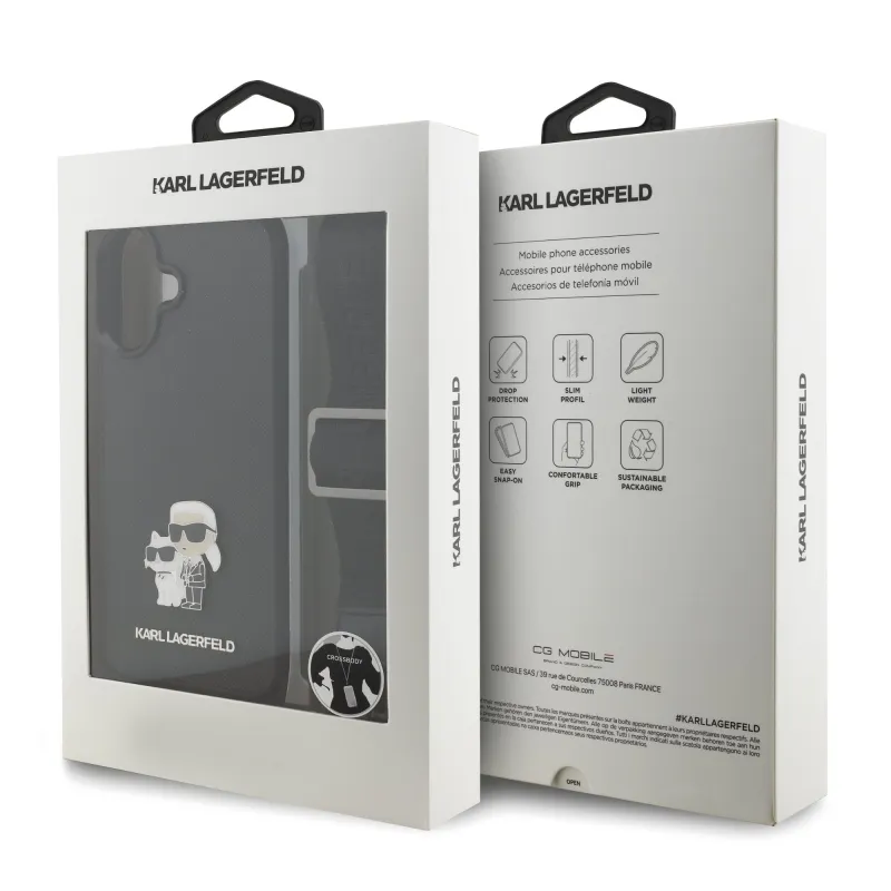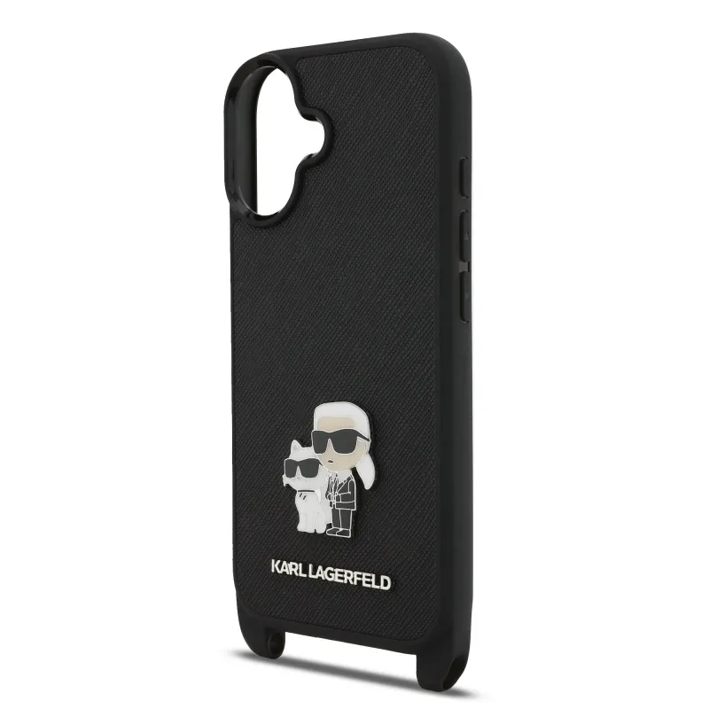Karl Lagerfeld Saffiano Crossbody Strap Metal Karl és Choupette hátlapi borító iPhone 17 Fekete