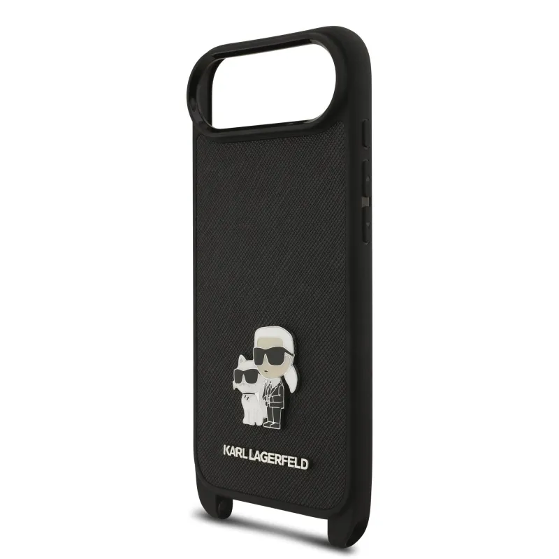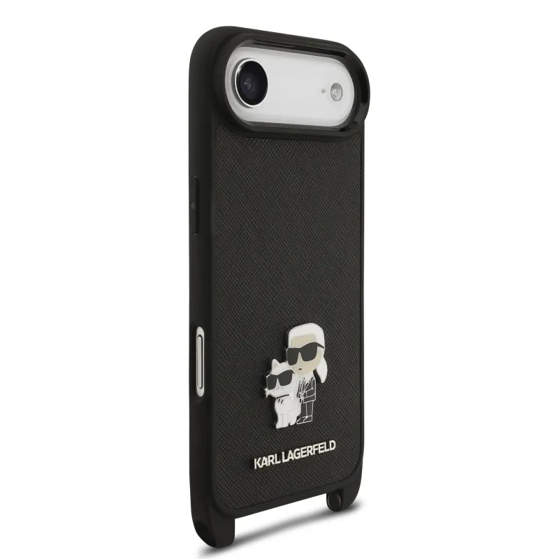 Karl Lagerfeld Saffiano Crossbody Strap Metal Karl és Choupette hátlapi borító iPhone Airhez Fekete