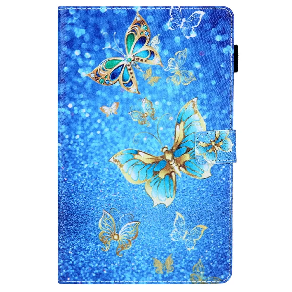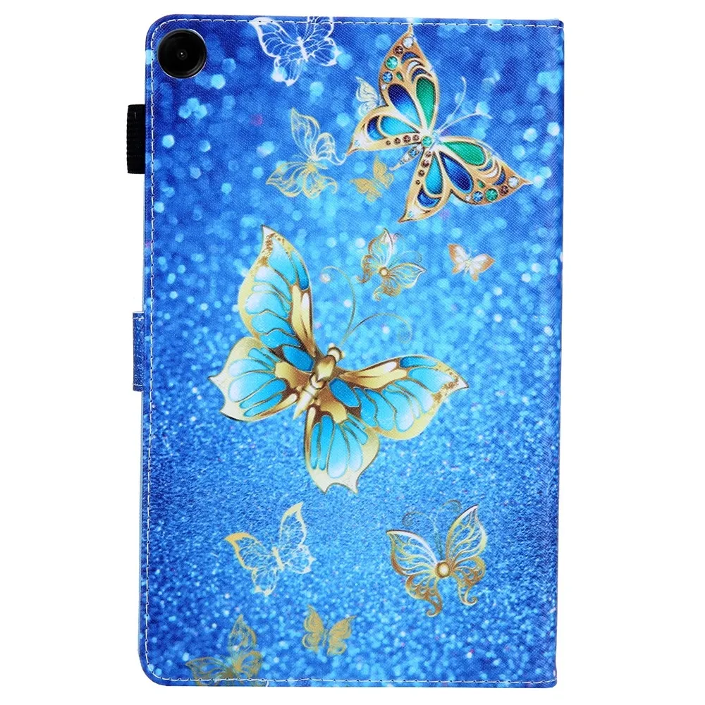 Kereszt intelligens záró tok Samsung Galaxy Tab A11/Tab A9 és kék-arany pillangókhoz
