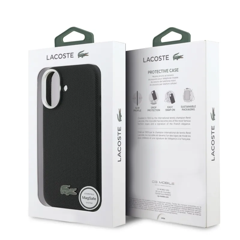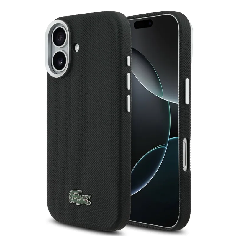 Lacoste Iconic Petit Pique fém logós MagSafe hátlap iPhone 17-hez, fekete