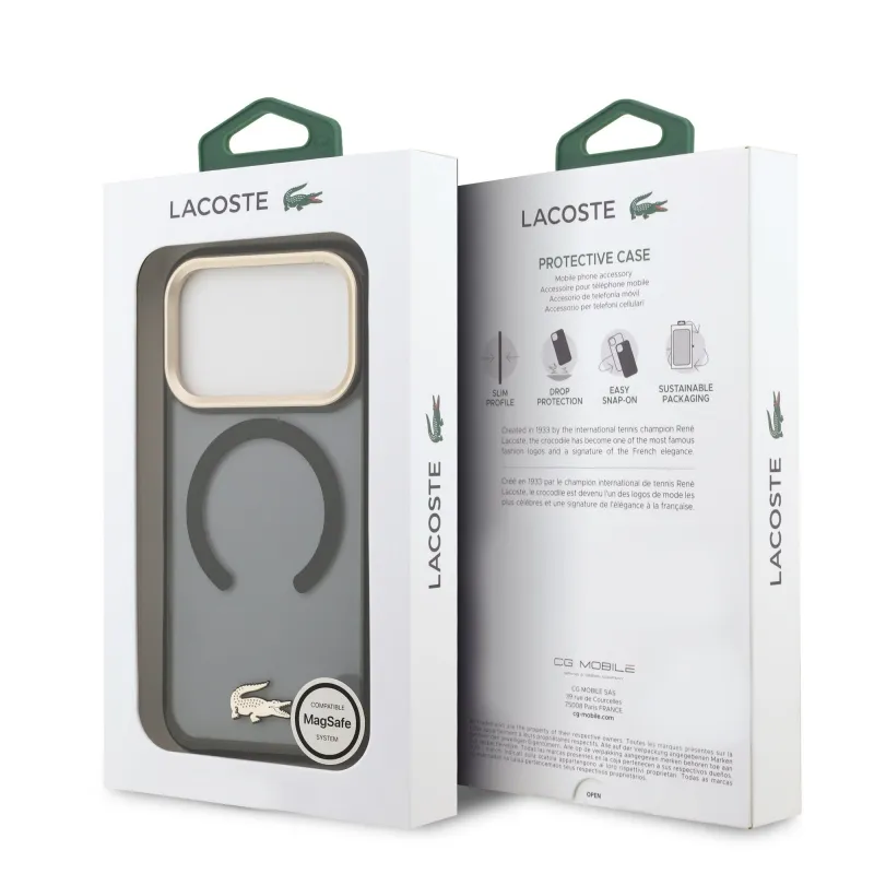 Lacoste PC/TPU Frosted Finish Gold Logo MagSafe hátlap iPhone 17 Pro Fekete fekete
