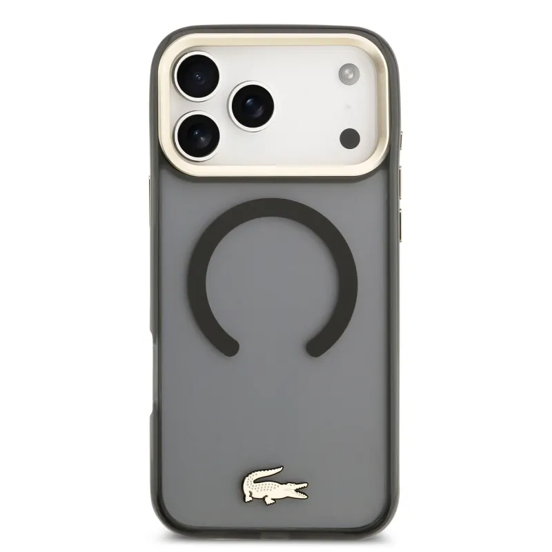 Lacoste PC/TPU Frosted Finish Gold Logo MagSafe hátlap iPhone 17 Pro Max-hoz fekete