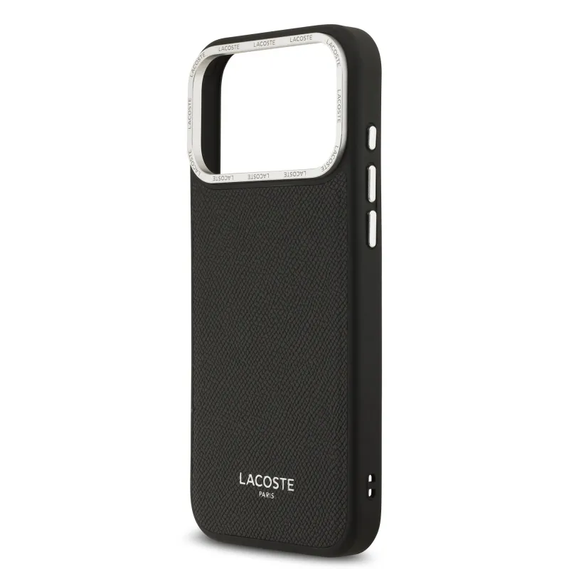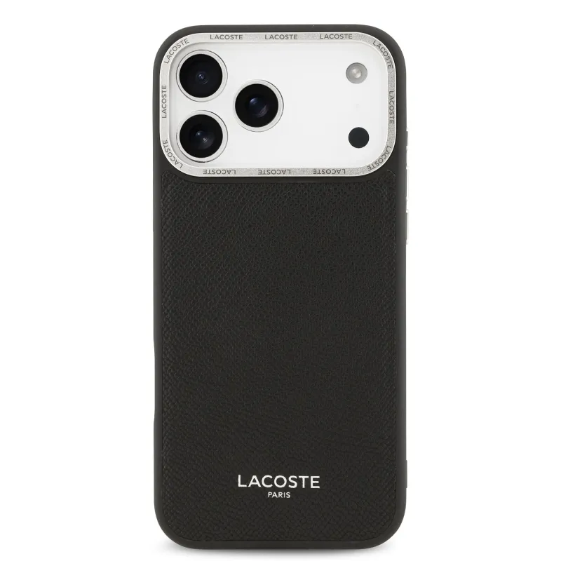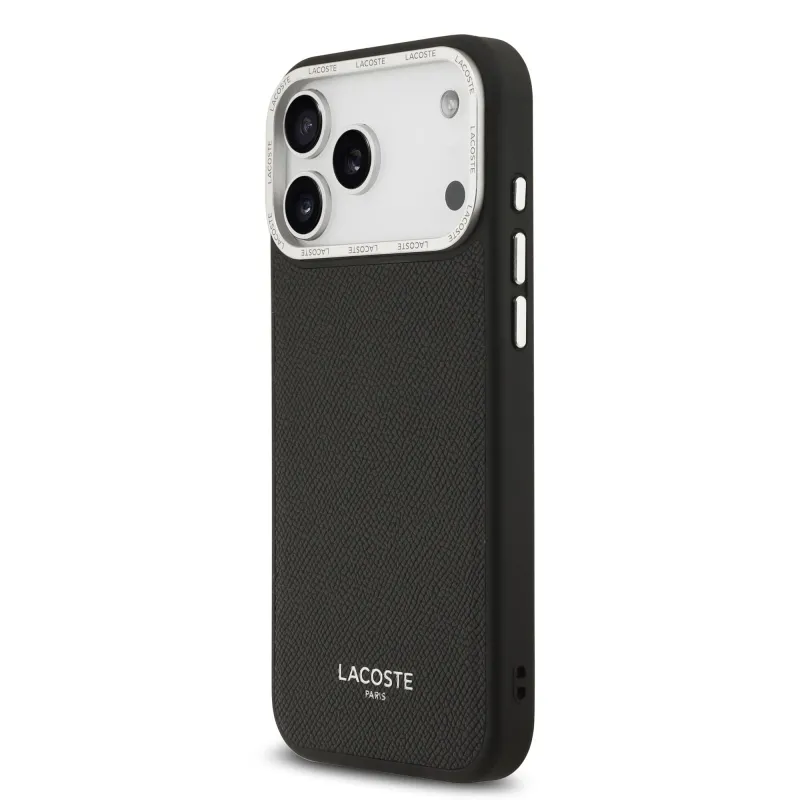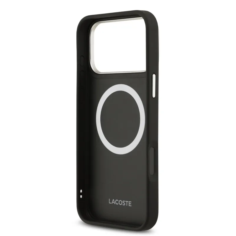 Lacoste PU bőr Champs Elysees MagSafe hátlap iPhone 17 Pro Max-hoz Fekete