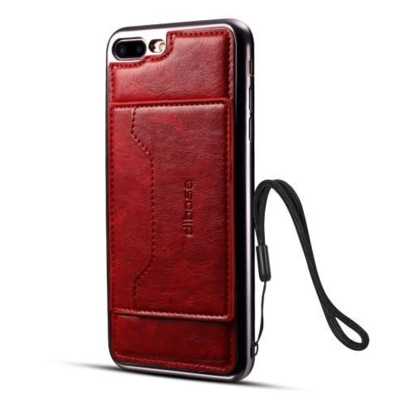 Leathy zselés tok PU bőr hátlappal és állvánnyal iPhone 8 Plus és 7 Plus készülékhez - piros színű