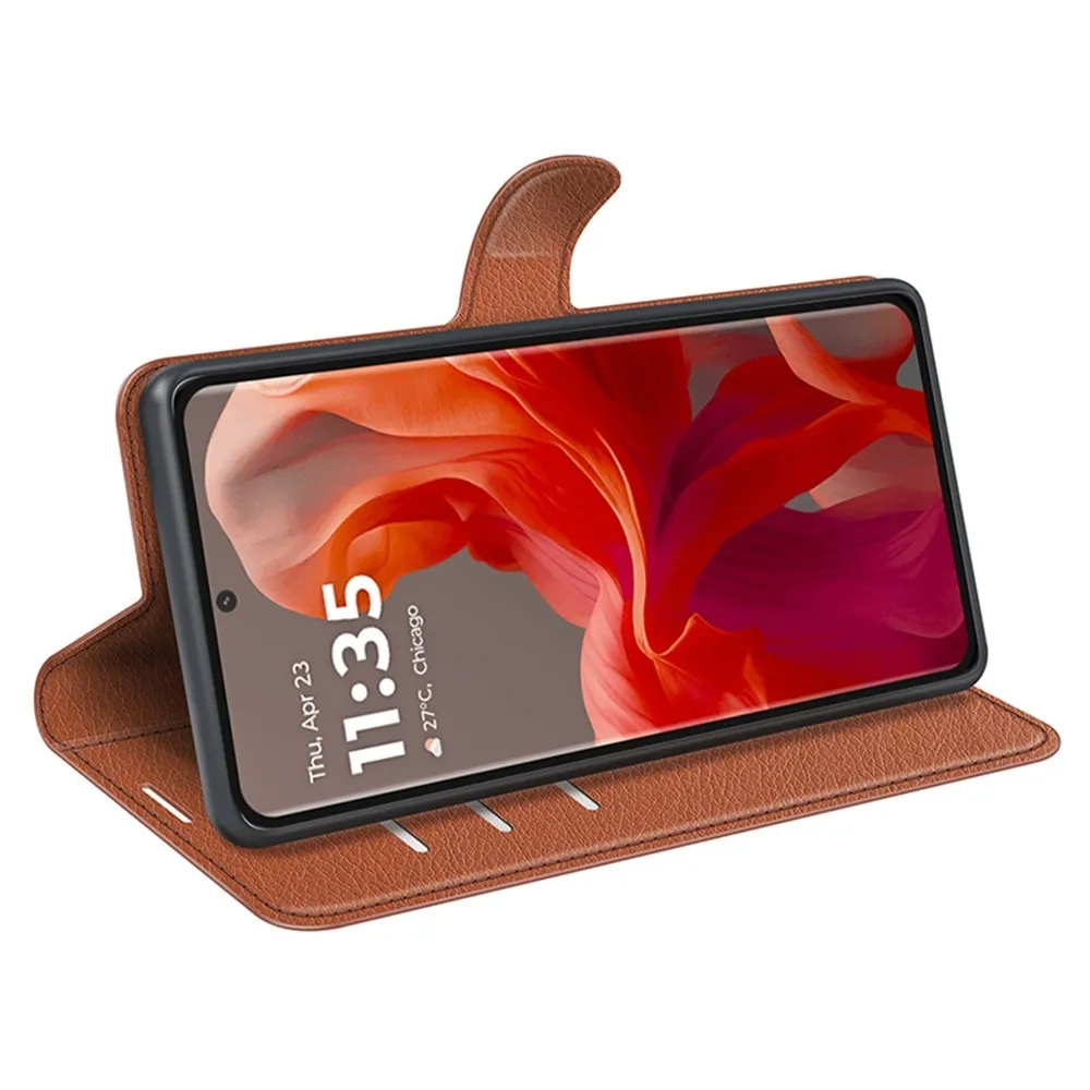 Barna Litchi pénztárca tok a Motorola Moto G85 5G-hez