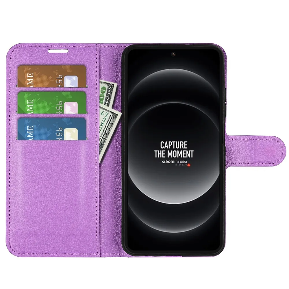 Lila Litchi pénztárca tok Xiaomi 14 Ultra számára